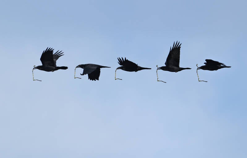 Beide Raven, de Vogel onderaan zoekt een geschikte tak om af te breken :