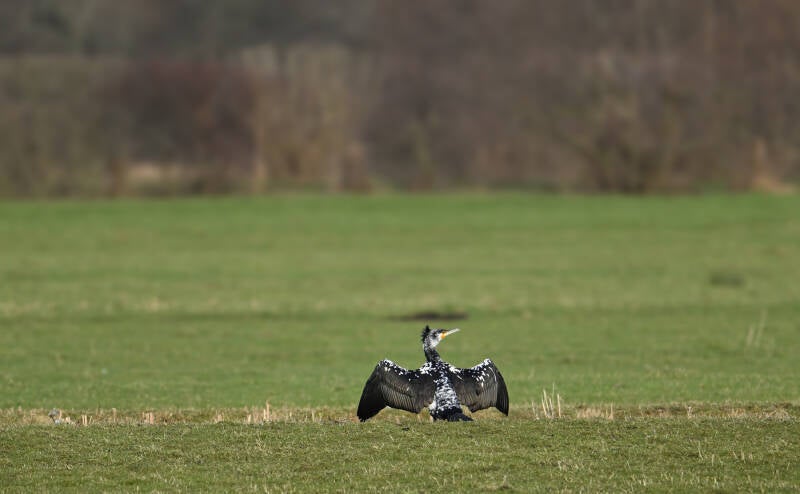 staat Aalscholver Snowy White te vleugelflappen aan een vaart...(38 foto's)