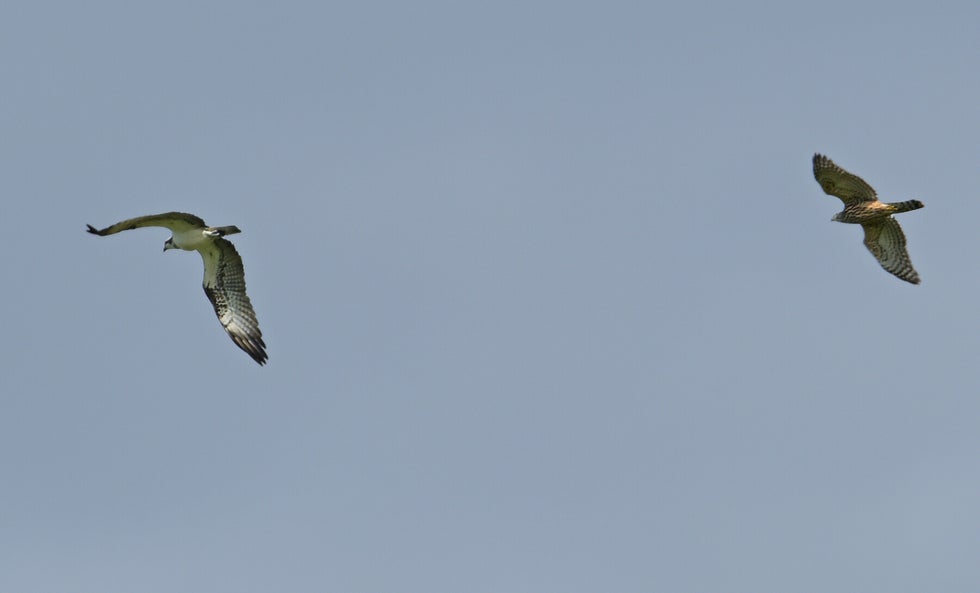 Bovenste Vogels zijn Buizerds, de Visarend is onderaan zichtbaar met het Visje :