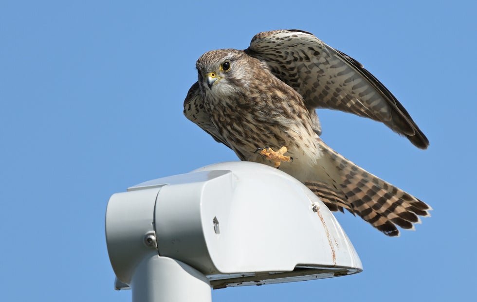De nieuwkomer Slechtvalk vangt nog net wat Zonlicht voordat er een miezerige periode aanbreekt..: