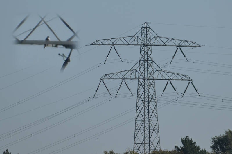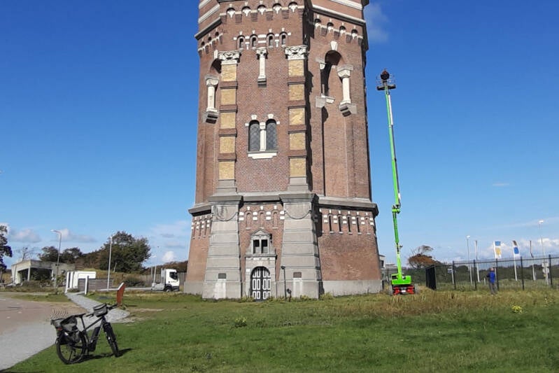 ...deze meneer met een hoogwerker die een loszittende kabel ging checken :