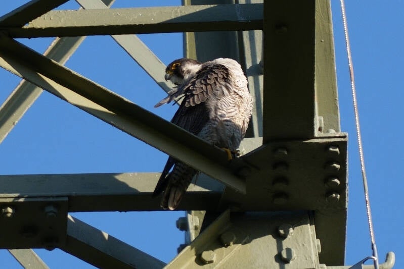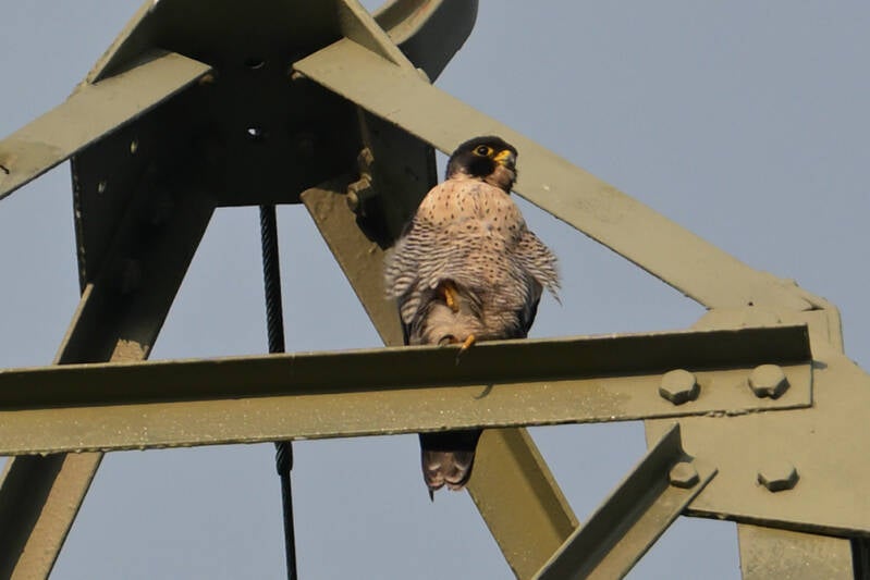 Ook vandaag op mast 8 het Manneke Slechtvalk