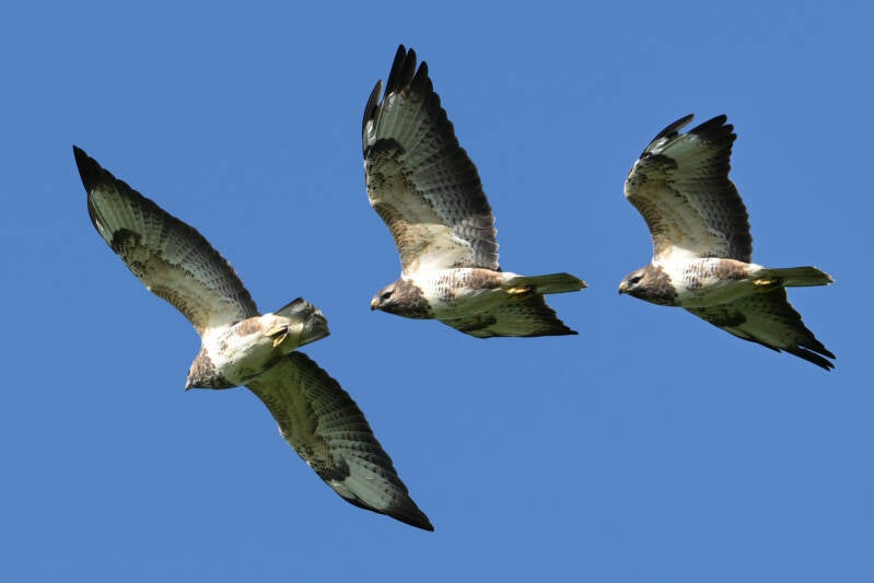 Uiteindelijk verschijnen er totaal zo'n 5 Buizerds, mogelijk instromers :