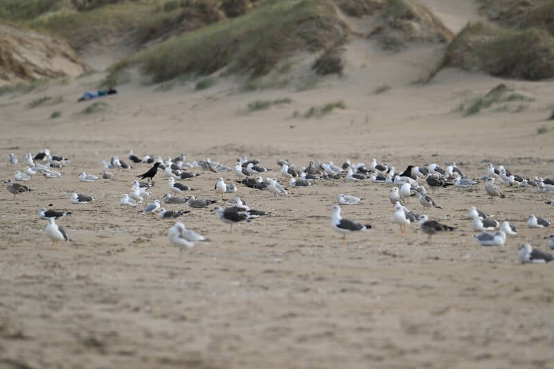 29 September : Vier kilometer strandjutten levert 3 Zilverplevieren en een Grote Mantelmeeuw met platvis op. ALO en PB zitten zeer dicht