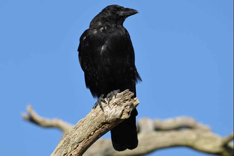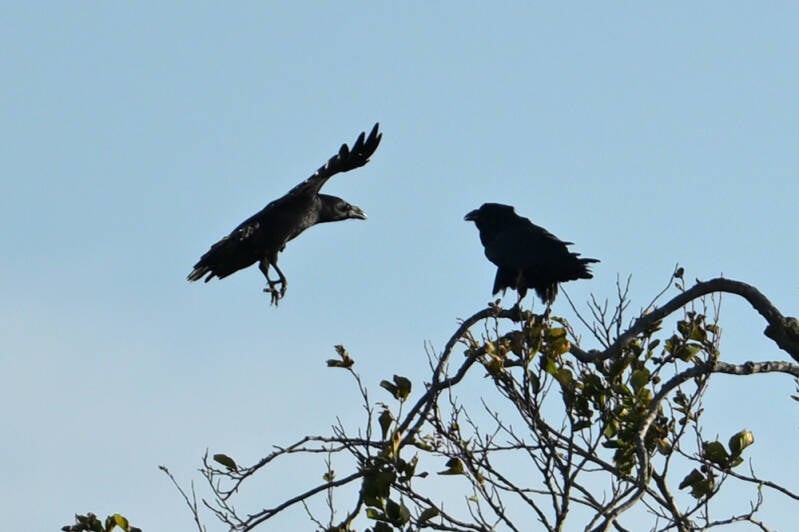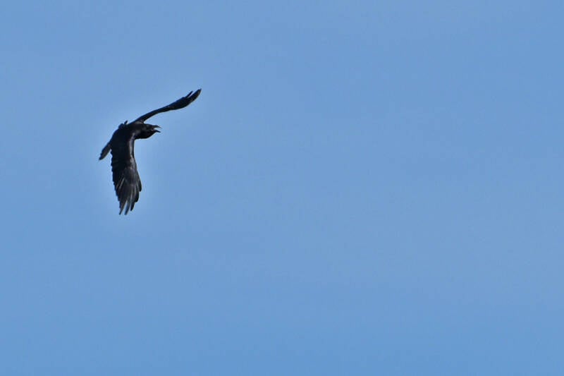 Een mannetje Havik zorgde slechts voor wat alarmerend gekrok van de Raaf :