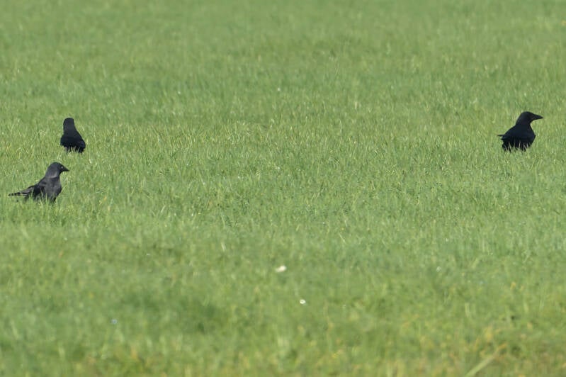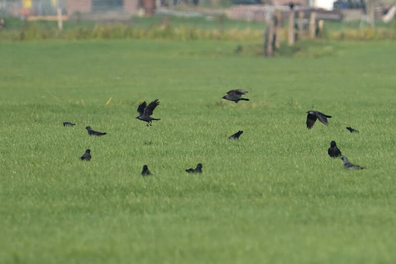 Op de graslanden zijn zo'n 100 Kauwtjes present en die zie je hier de laatste jaren maar zeer zelden :