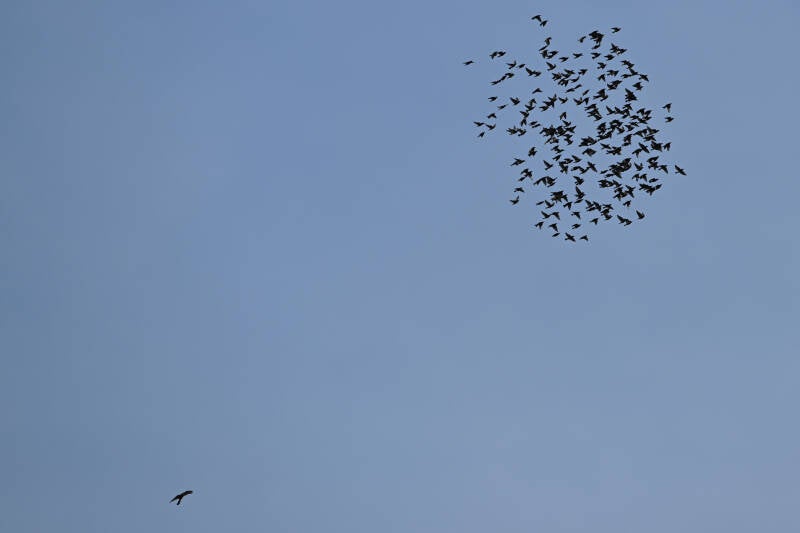 De wind was gunstig voor Vogeltrek maar alleen deze Sperwer met Spreeuwen was de moeite waard :