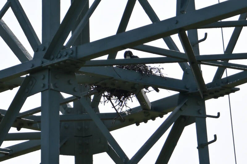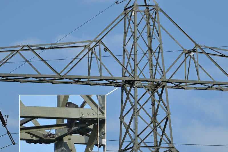 -Tijdens mijn 2,5 uur durende bezoek verbleef Finnie op de bovensrte dwarsligger van mast 19...(foto van 1 km afstand)
