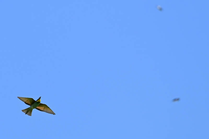 -Let op dat een paar keer het doorslikken van een insect is te zien. Verder 2 Bijeneters die achter hetzelfde insect aan lijken te zitten :