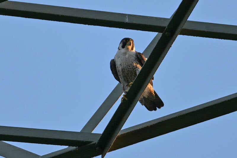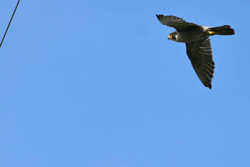Als de Raven vertrekken kijk ik naar links en zie ik een volwassen Valk op mast 18......Dat kan er uiteraard maar één zijn :