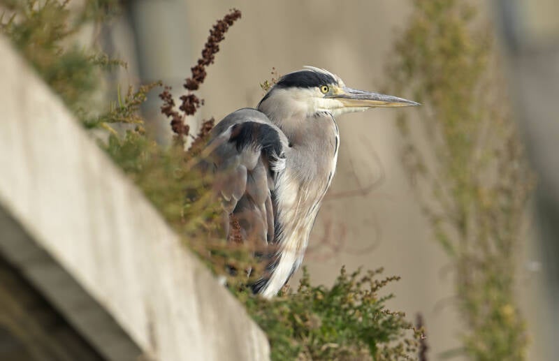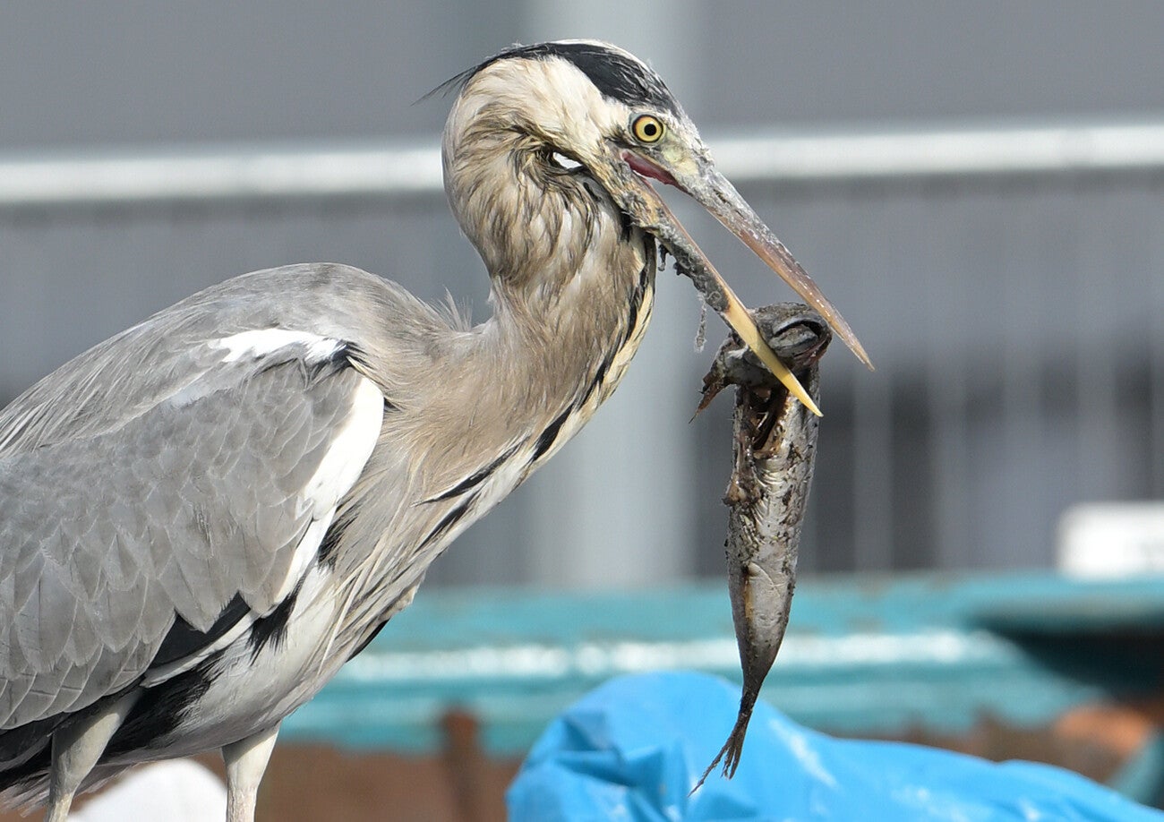 Strijkt hebberig neer bij een Reiger die net een Visje aan het verwerken is :