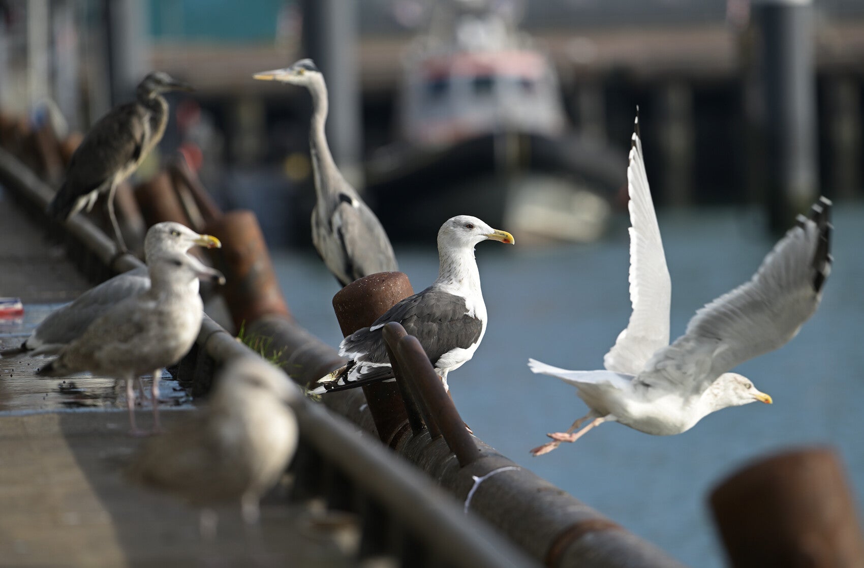 worden met als hoogtepunt de Bonte Kraai die pogingen onderneemt om een schaaldier(?) kapot te gooien op het dak van de Visafslag...(65 foto's)