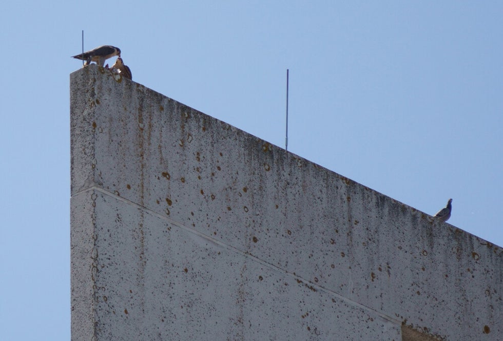 Vlak hiervoor verstopte ze een verse Duif op een richel. (Geen foto's)