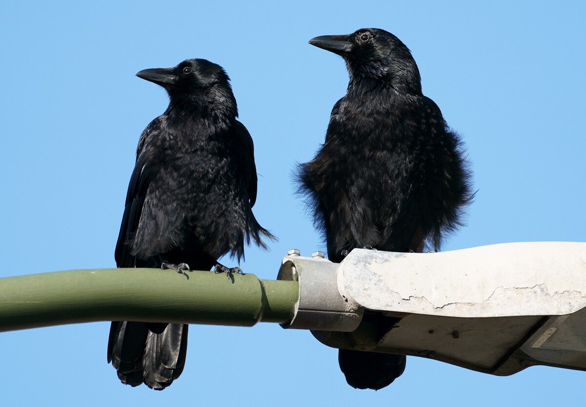 Zo dicht naast elkaar blijft een zeldzaam tafereel. Het verschil in tint van de beulskappen is dan weer mooi te zien :