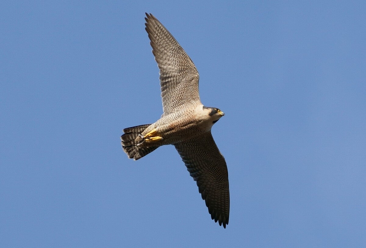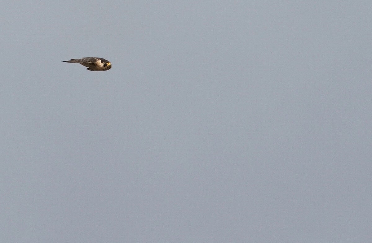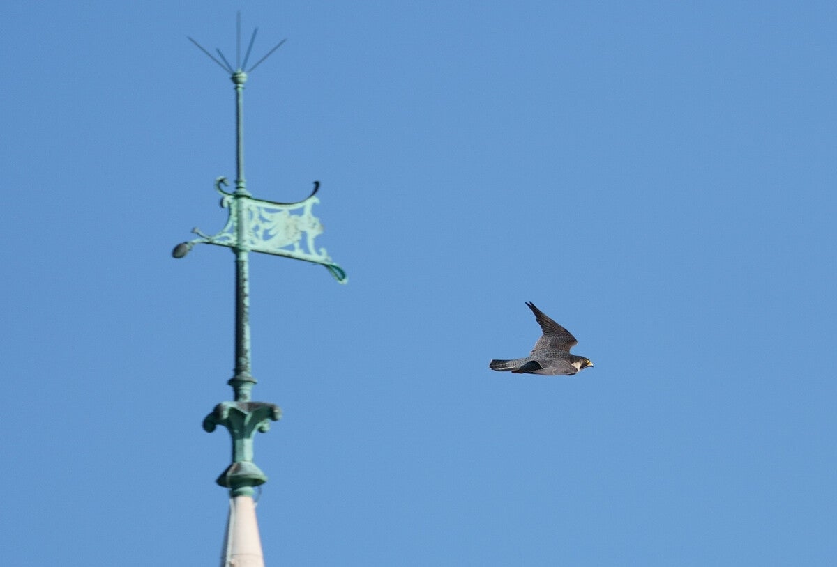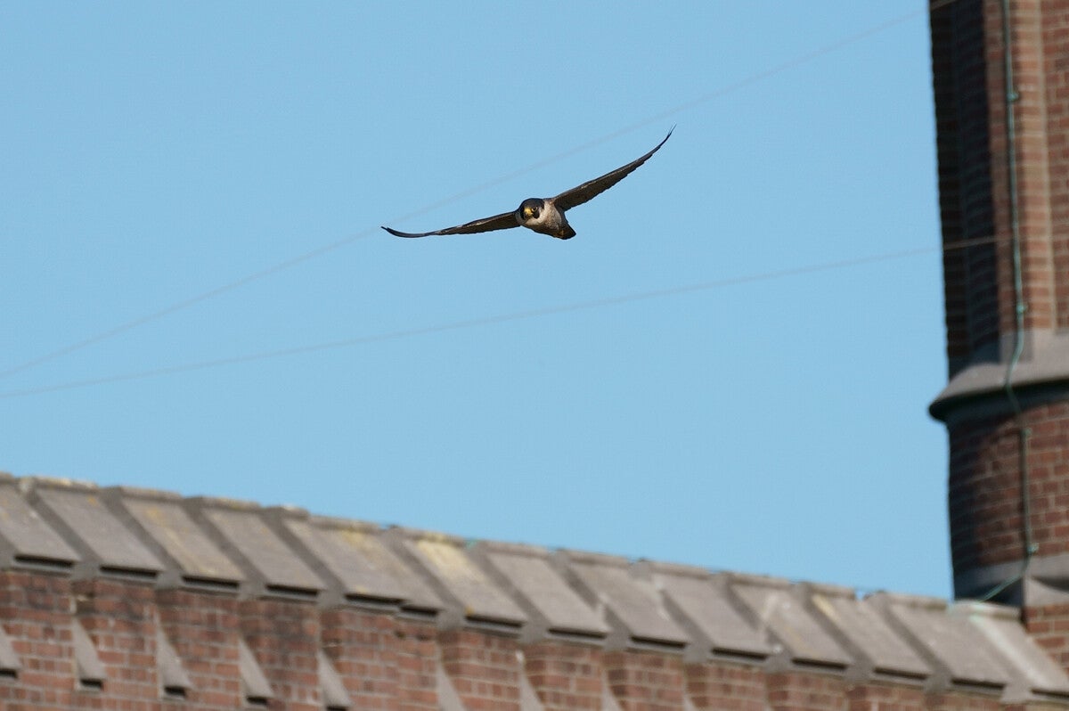 Na een paar rondjes om de Toren verdwijnt de jonge Valk weer. (De Vogel werd eerder op de dag ook gezien door een collega-waarnemer)