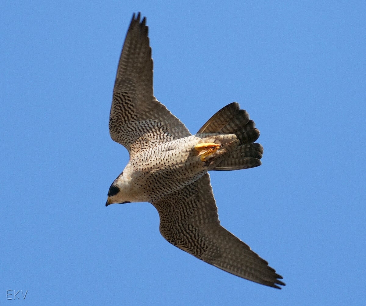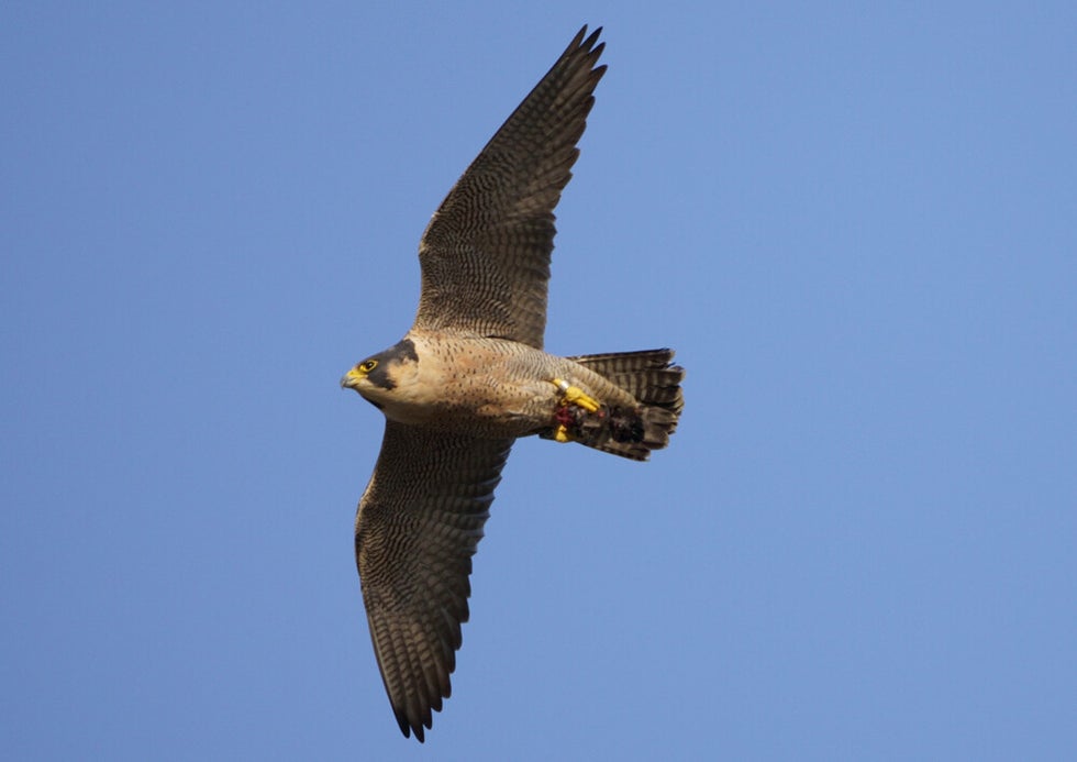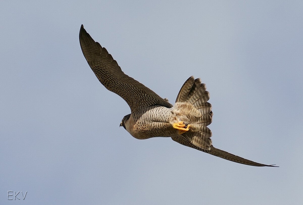 -De Valk is linksonder te zien. Rechts zijn nog wat veertjes van de gelukkige Duif zichtbaar..)
