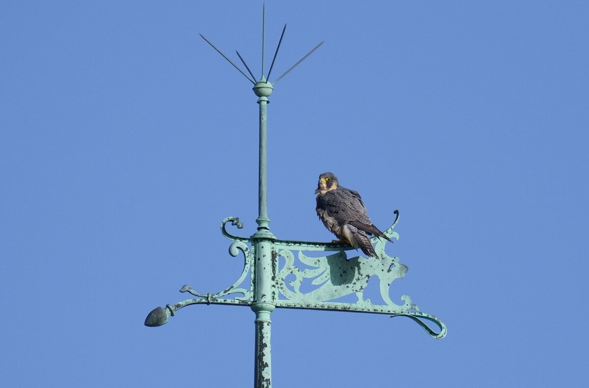 Af en toe wordt er nog wel eens een Valk op het dak gezien :